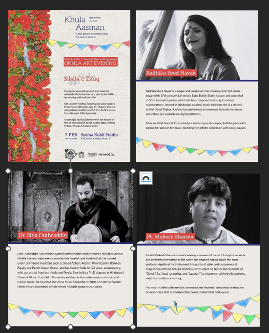 For Radhika, it’s been a fascinating journey across many terrains. While on the one hand, magnificent venues like NCPA Mumbai, Royal Opera House Mumbai, India Habitat Centre Delhi, the Great Eastern Mills Mumbai, the Lotus Temple Auditorium Delhi, the Ahhichatragarh Fort at Nagaur, the Y B Chavan Auditorium Mumbai, Asiatic Library Darbar Hall, Otters Club, Carter Road Amphitheatre, Bengal Rowing Club Kolkata, Kitaab Khana have hosted her Concerts, on the other hand, she has performed in the vibrant heartland of India, be it Luniya Khedi and Dewas in Madhya Pradesh or Barmer in Rajasthan.